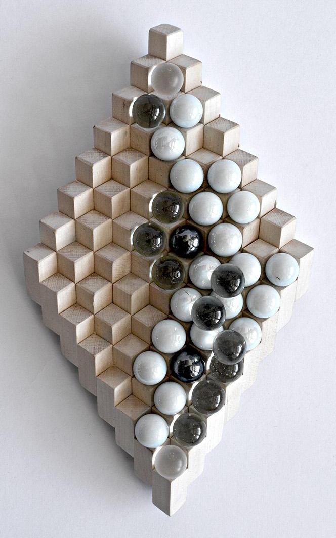 Working with dry wool thread, connect each of these points to every other, but do not pull them taut.