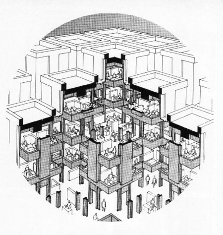 Jose Sanchez, Blockhood (left), Herman Hertzberger, Central Beheer Office Building (right)