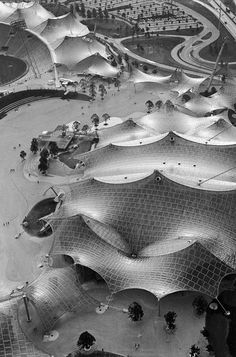 Marc Fornes, Non-Lin / Lin (left), Frei Otto, Munich Olympic Stadium (right)