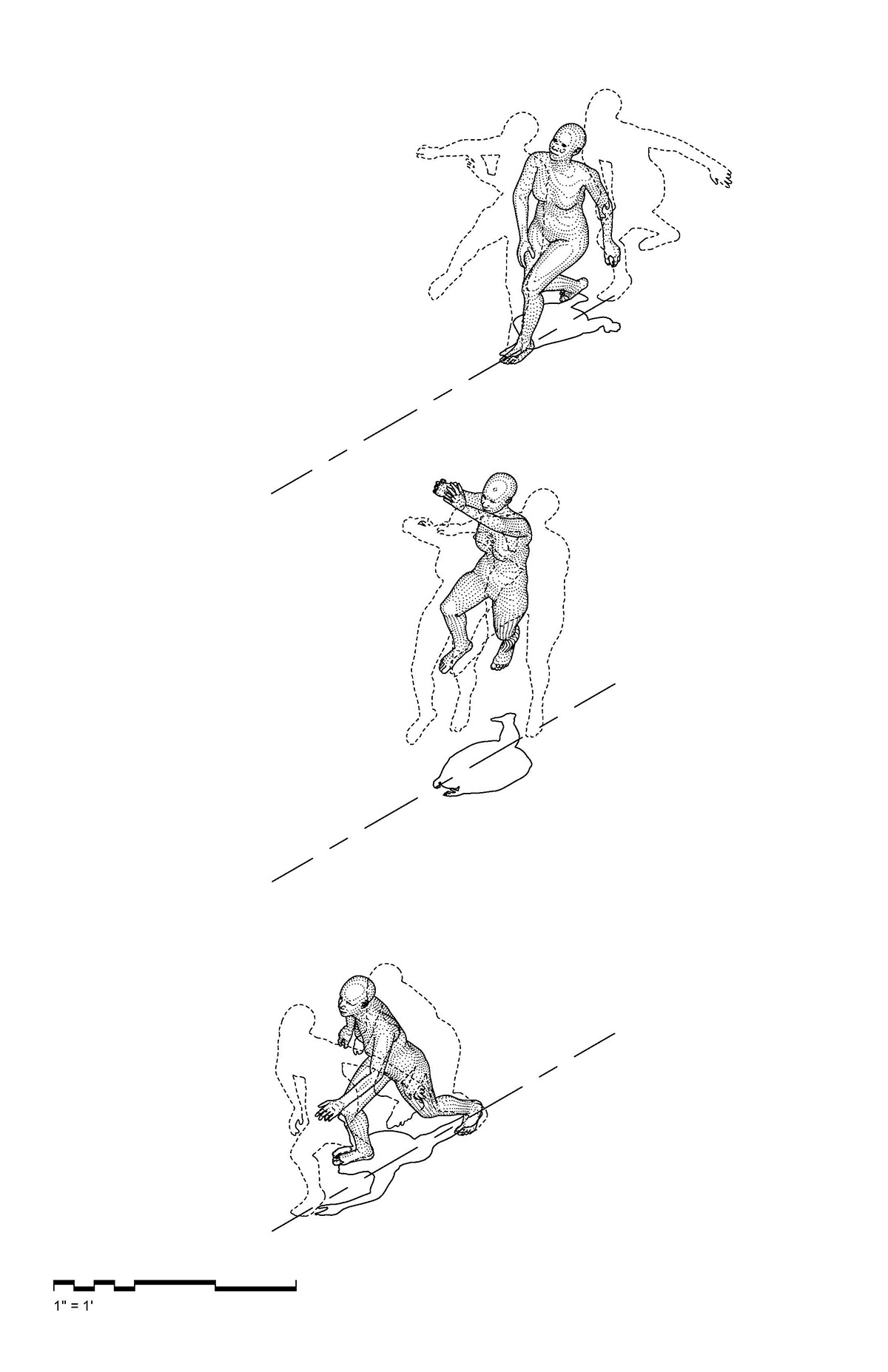 This semester-long assignment calls for the production of a number of pairs of drawings that will be exhibited at our final review. One drawing in each pair depicts a human body in motion, while the other depicts a case-study building.