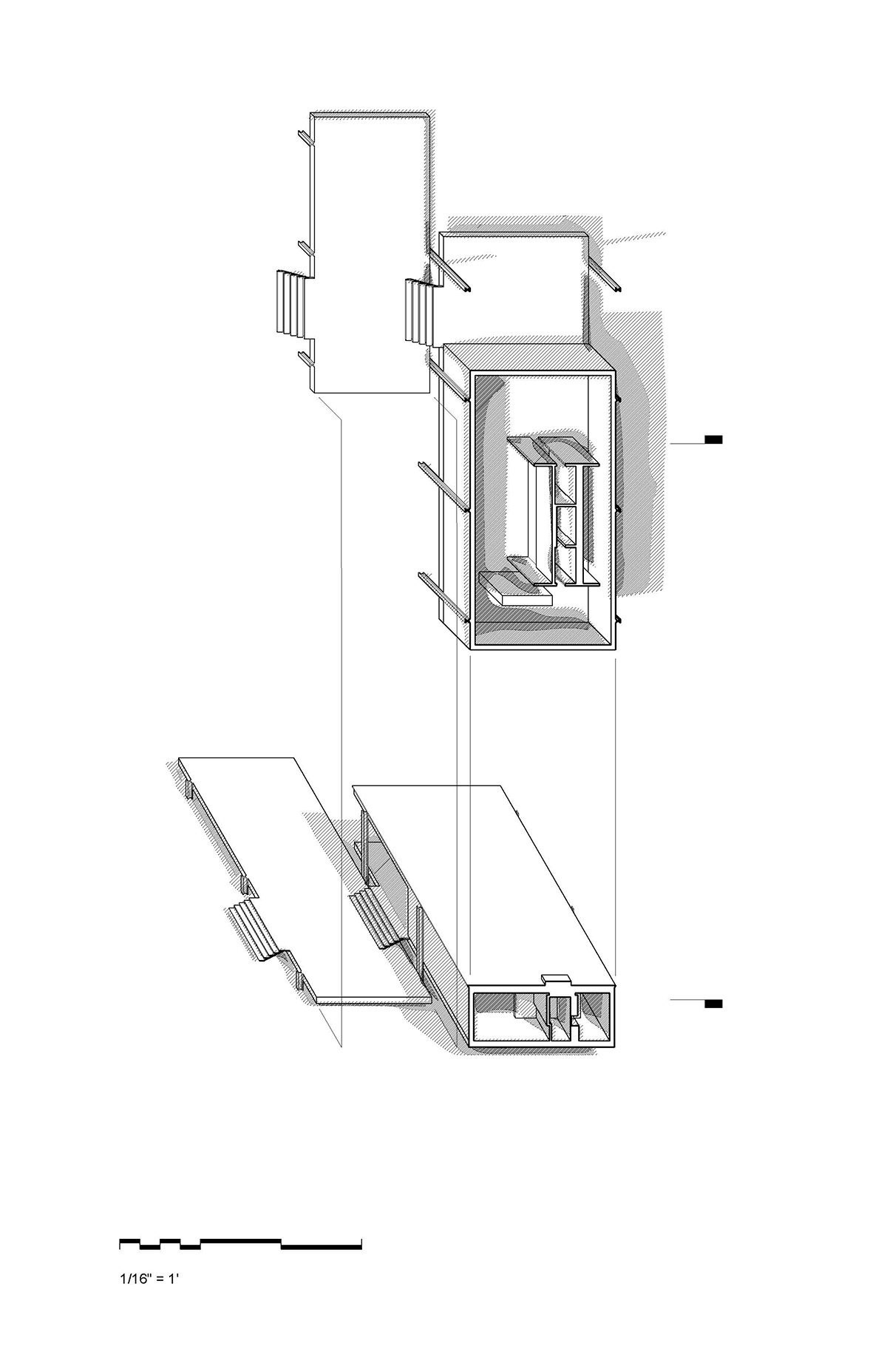 In the above diptych, the student author emulates the analytic axonometric of Peter Eisenman.