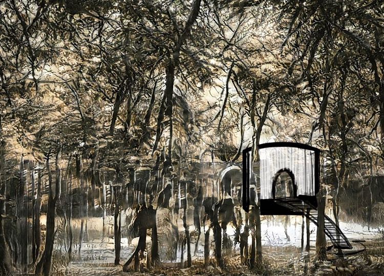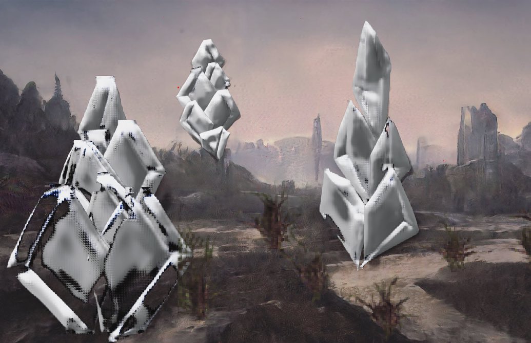 Here, following Semper and using Artbreeder as a provocateur once more, students each make a coordinated proposal for four elemental building systems: a hearth, a roof, an enclosure, and a mound. Each of these systems forms the basis of the training of a separate Sketch2Pix brush, which is then employed to produce a number of architectural proposals rendered in axonometric.