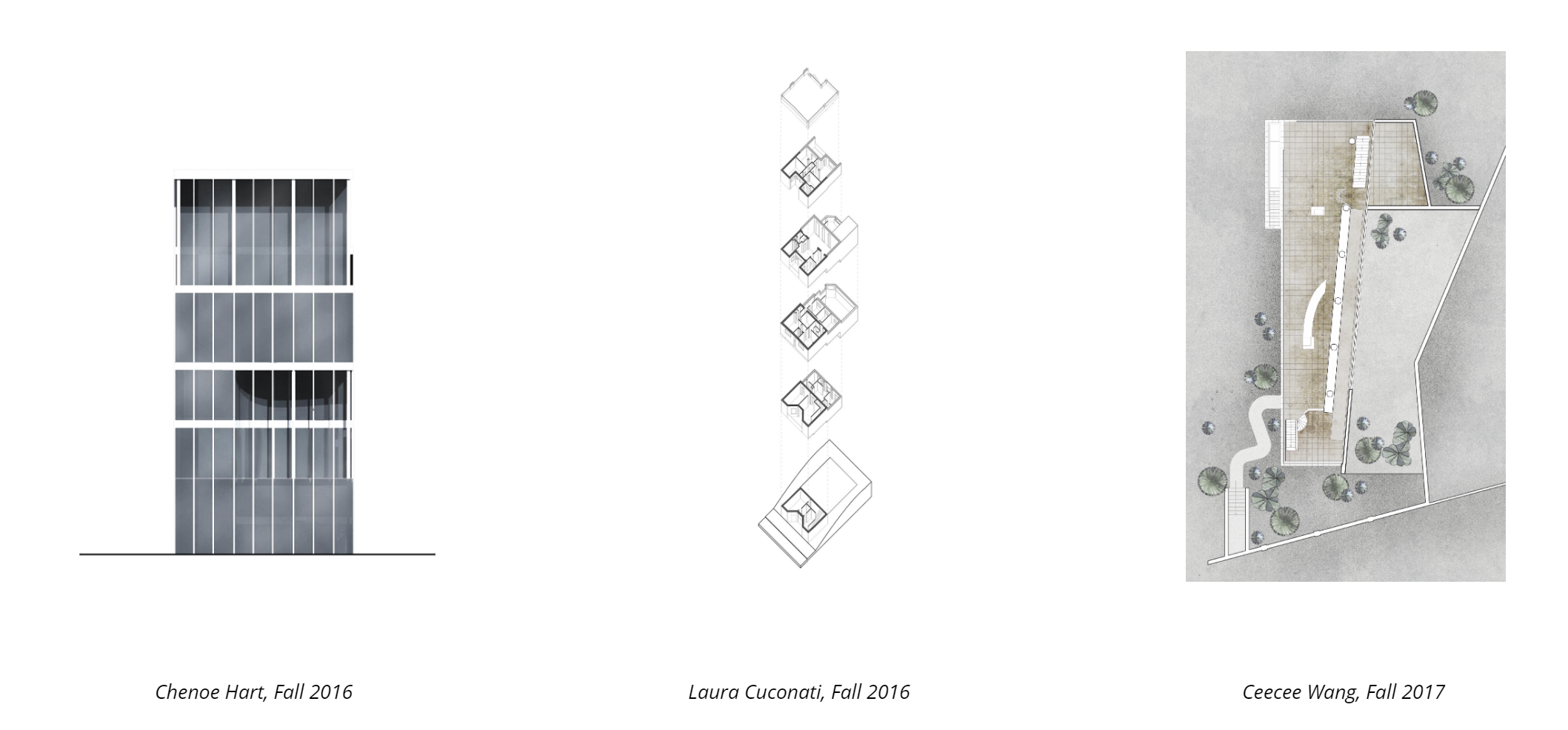 Central among these projects is The Standard Set Project, in which students perform a thorough graphic investigation of a case study project; from research and documentation, to 3d modeling, to drawing extraction, to post-production in vector and raster editing contexts. This project culminates in a final exhibition that occurs during final exam week.