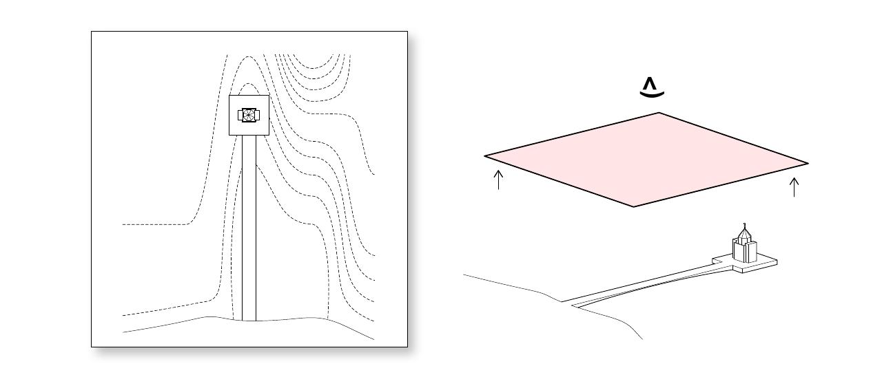 This is a vertical cut through the context of the surrounding site, which may include other buildings, trees, water, or other landscape features to explain the nearby adjacencies.