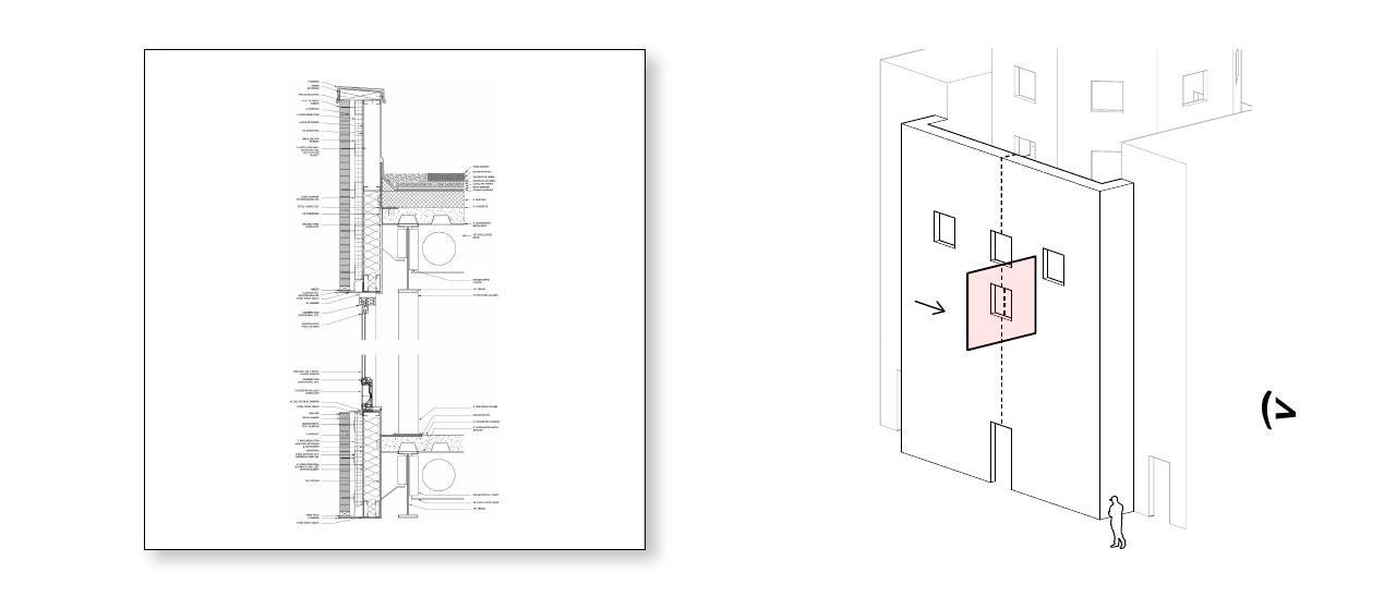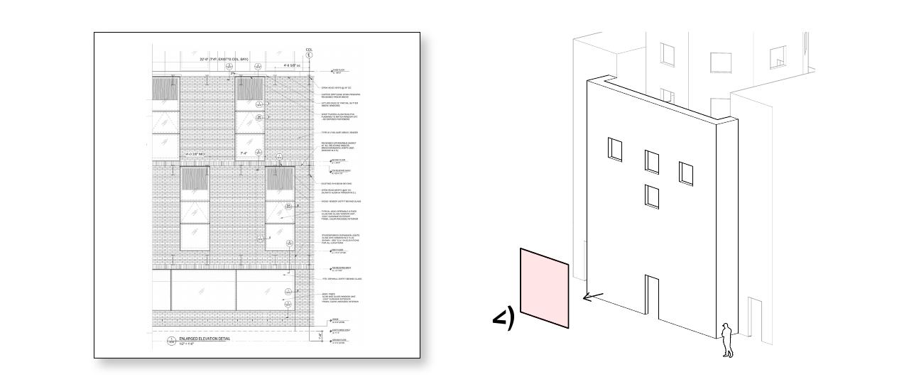 This drawing is used to show a portion of the elevation in more detail. In practice, this drawing is used extensively in documentation for creating shop drawings and for locating elements for construction. The view is fine enough to allow dimensioning and to make call-outs for construction details.