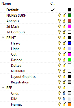If using the template related to this talk, we may organize these line types onto some of the layers shown here. Note that not all the layers depicted will be used.