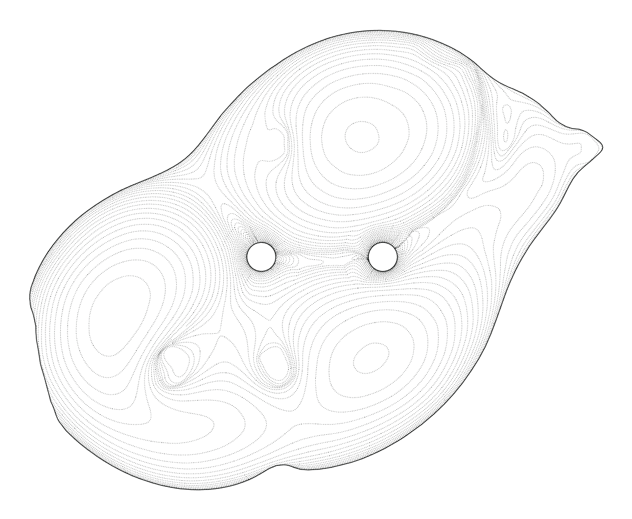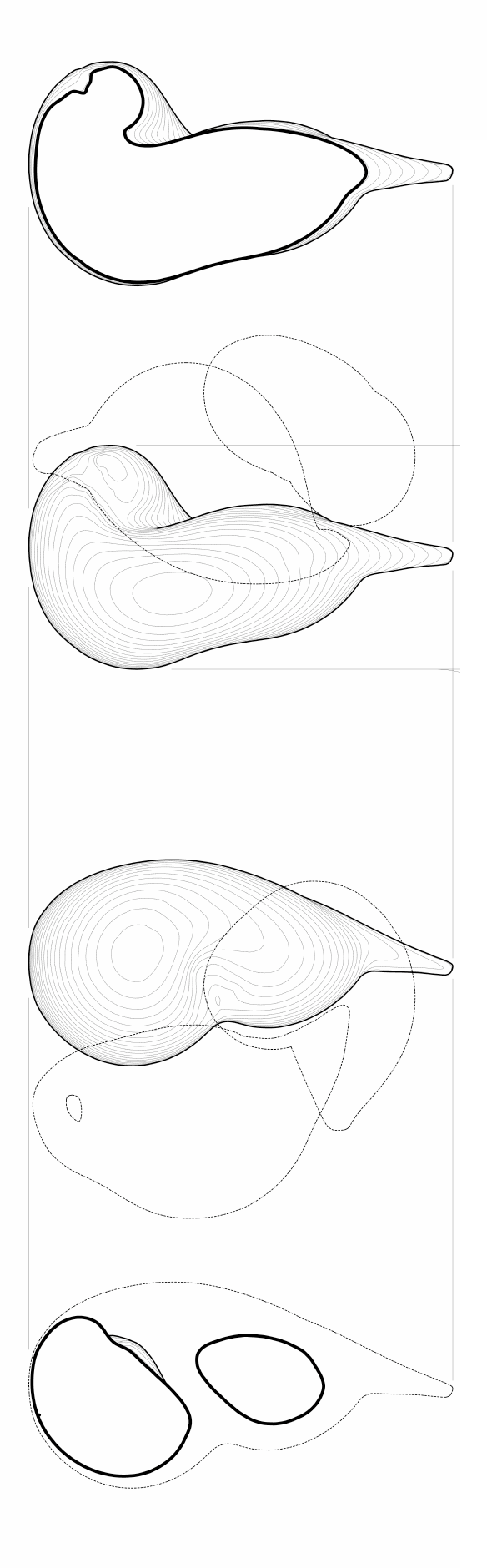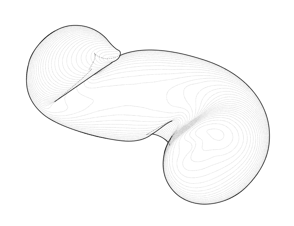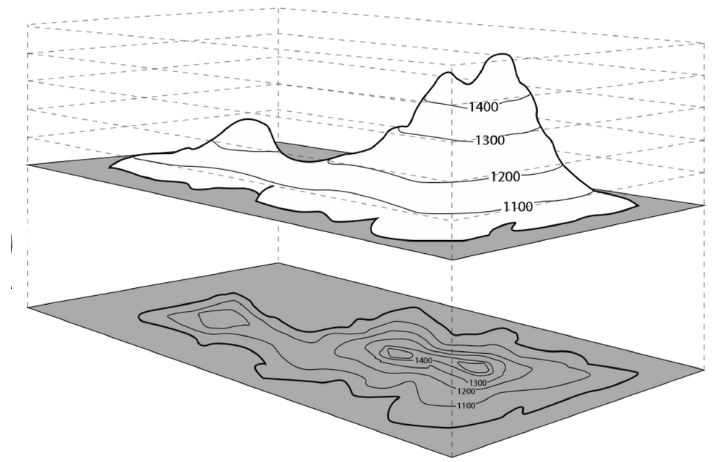 Like the lines of a topographic map, contour lines describe the geometry of a form as it intersects parallel planes at regularly spaced intervals. To produce meaningful forms, these planes must be parallel to the view plane, the way that topo lines are cut by planes parallel to the ground and seen from above.