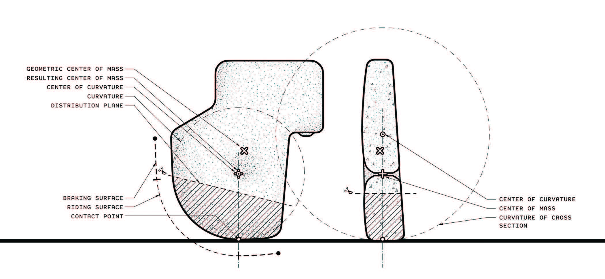 Construction Lines that do not describe the form in question, but are used in the creation of other lines or to show relationships. This includes registration lines, alignment lines, or lines that describe the underlying geometric logic of a form.
