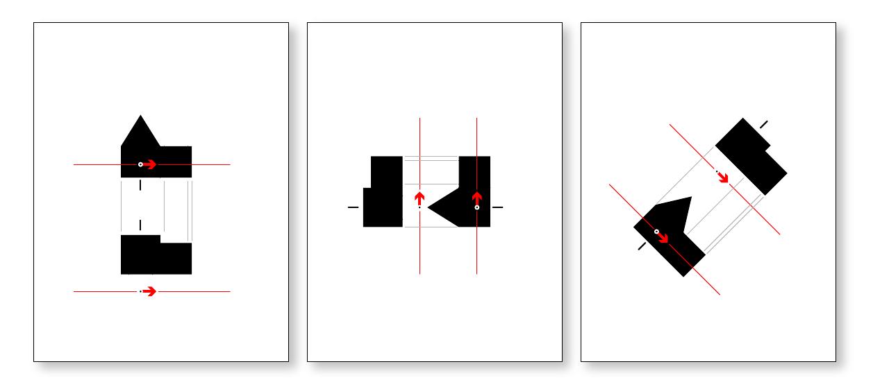 Expanding the possible layouts available to us, registration lines may be bent or "reflected" across a bisecting line. This allows us to bring more than one relationship to bear.